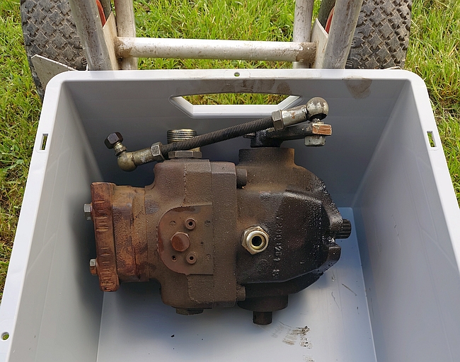 Befundung der Hydraulikpumpe der Schöma KDL10 wurden Motor und Hydraulikpumpe ausgebaut.